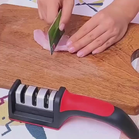 مبراة السكاكين ثلاثية المراحل - مبراة يدوية متعددة الاستخدامات مصممة لاستعادة حدة سكاكين المطبخ وسكاكين الطهاة والمقصات والمزيد بسهولة ودقة.