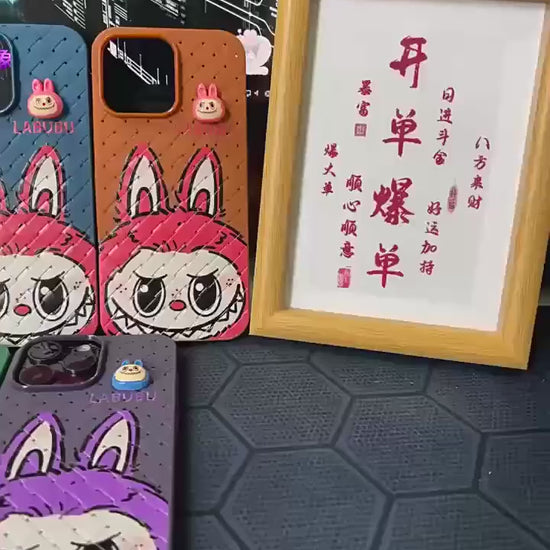 LABUBU - جراب iPhone واقي بتصميم أرنب ثلاثي الأبعاد منسوج