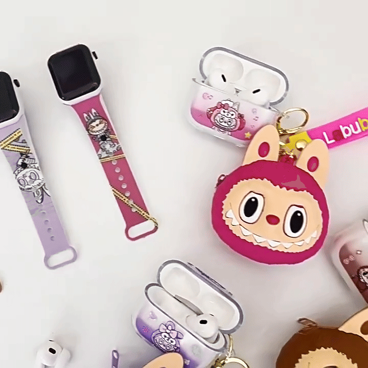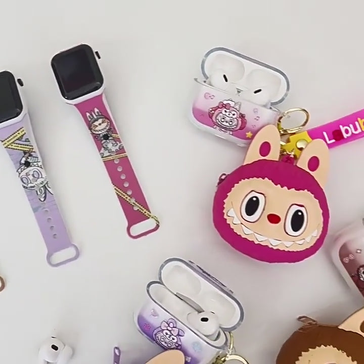 Labubu - مجموعة هدايا سماعات الأذن اللاسلكية - صندوق هدايا ممتع وملون يحتوي على سماعات أذن TWS وساعة ذكية وسلسلة مفاتيح كرتونية وإكسسوارات متطابقة في شكل "وحش" مرح.