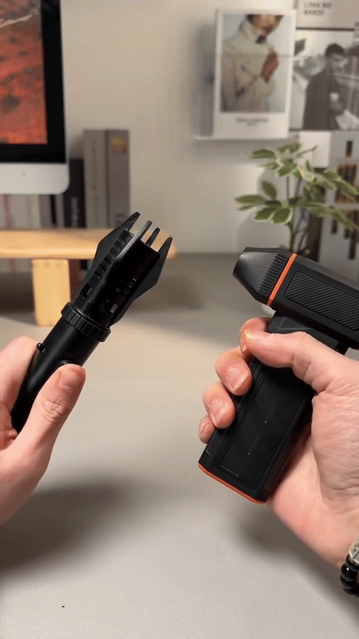 تدفق هواء قوي - مزود بمحرك توربيني لنفخ الغبار بكفاءة، مما يضمن التنظيف العميق في المناطق التي يصعب الوصول إليها.