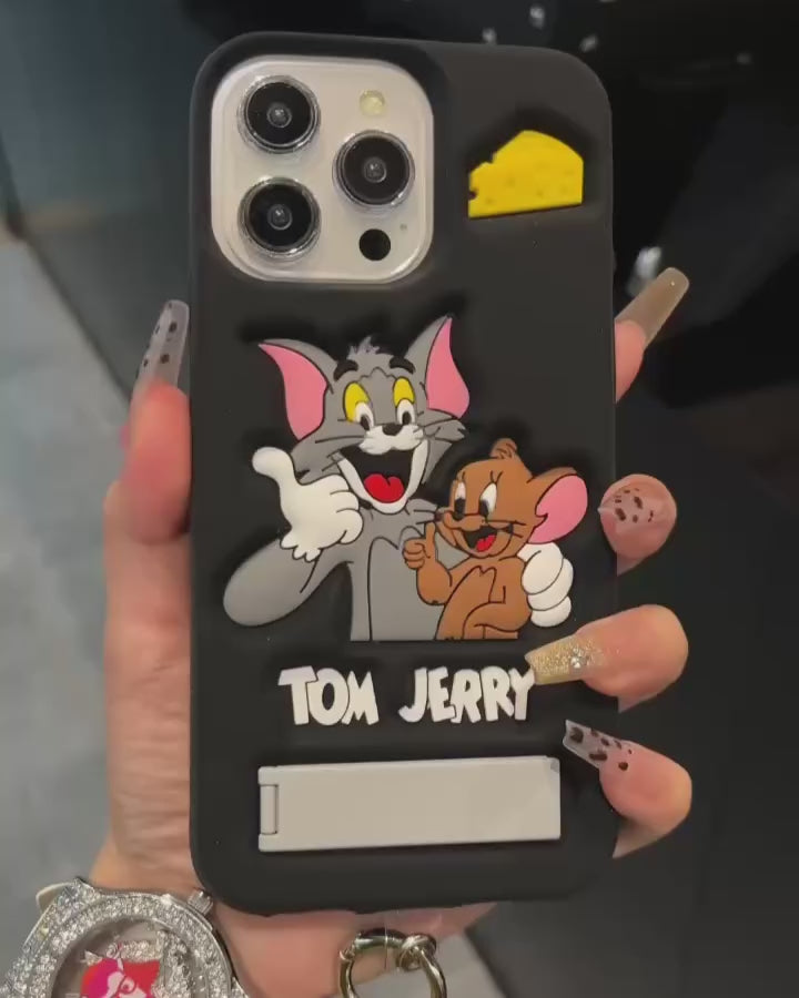 جراب هاتف ثلاثي الأبعاد برسومات توم وجيري الكرتونية