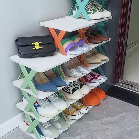 رف تخزين متعدد الوظائف (6 طبقات) - منظم أحذية وأغراض مضغوط وقابل للتكديس مثالي لزيادة المساحة في أي غرفة.
