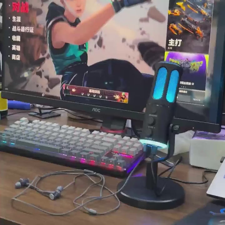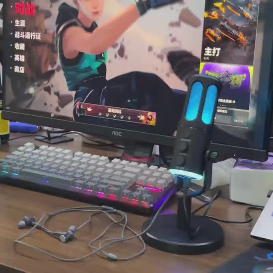 ميكروفون مكثف USB سهل التوصيل والتشغيل مع أضواء RGB ديناميكية "تتنفس".