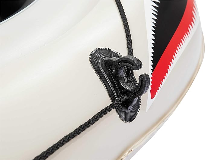 Two‑person inflatable dinghy with fierce shark graphics—perfect for pools, calm lakes and beach fun (age 6+).