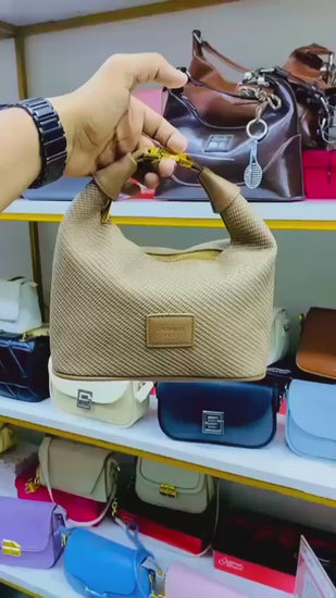 Mini Handbag – A compact, chic handbag with gold-tone hardware and textured leather finish, designed for stylish versatility.