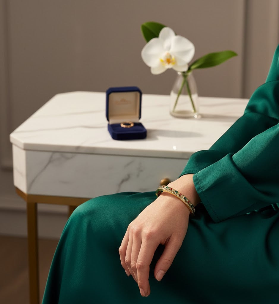 Multicolor Stones: Beautifully set stones in red, blue, green, and crystal tones.