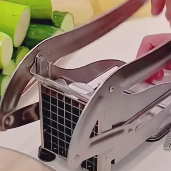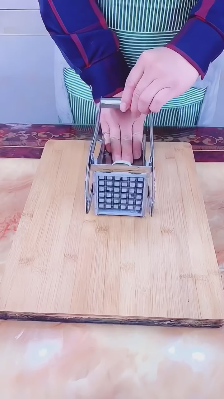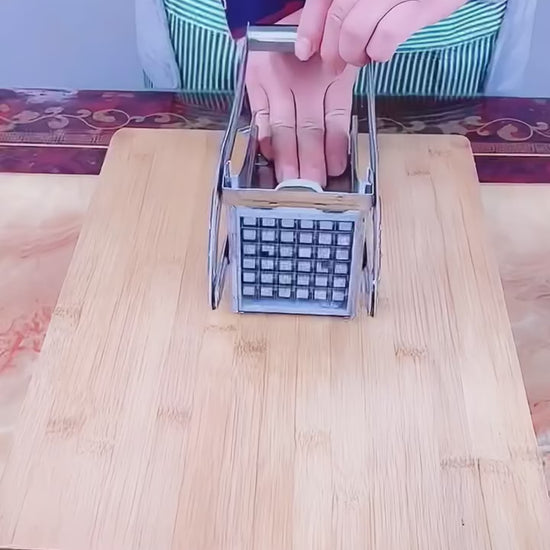 Stainless Steel Potato & Vegetable Cutter – A heavy-duty manual slicer designed for quick and uniform cutting of potatoes, carrots, cucumbers, and more, making food prep faster and easier.